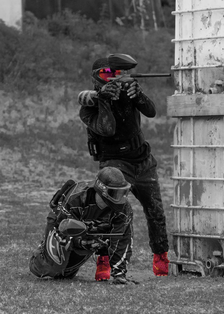 Our Traditional Paintball games are what most people associate with when referring to paintball. We use a standard mechanical paintball gun that shoots 68 caliber paintballs which is a step up over our Low Impact Paintball. Our traditional paintball format is recommended for ages 12+ mainly due to the weight and size of the playing equipment as well as the force of the 68 caliber paintball.